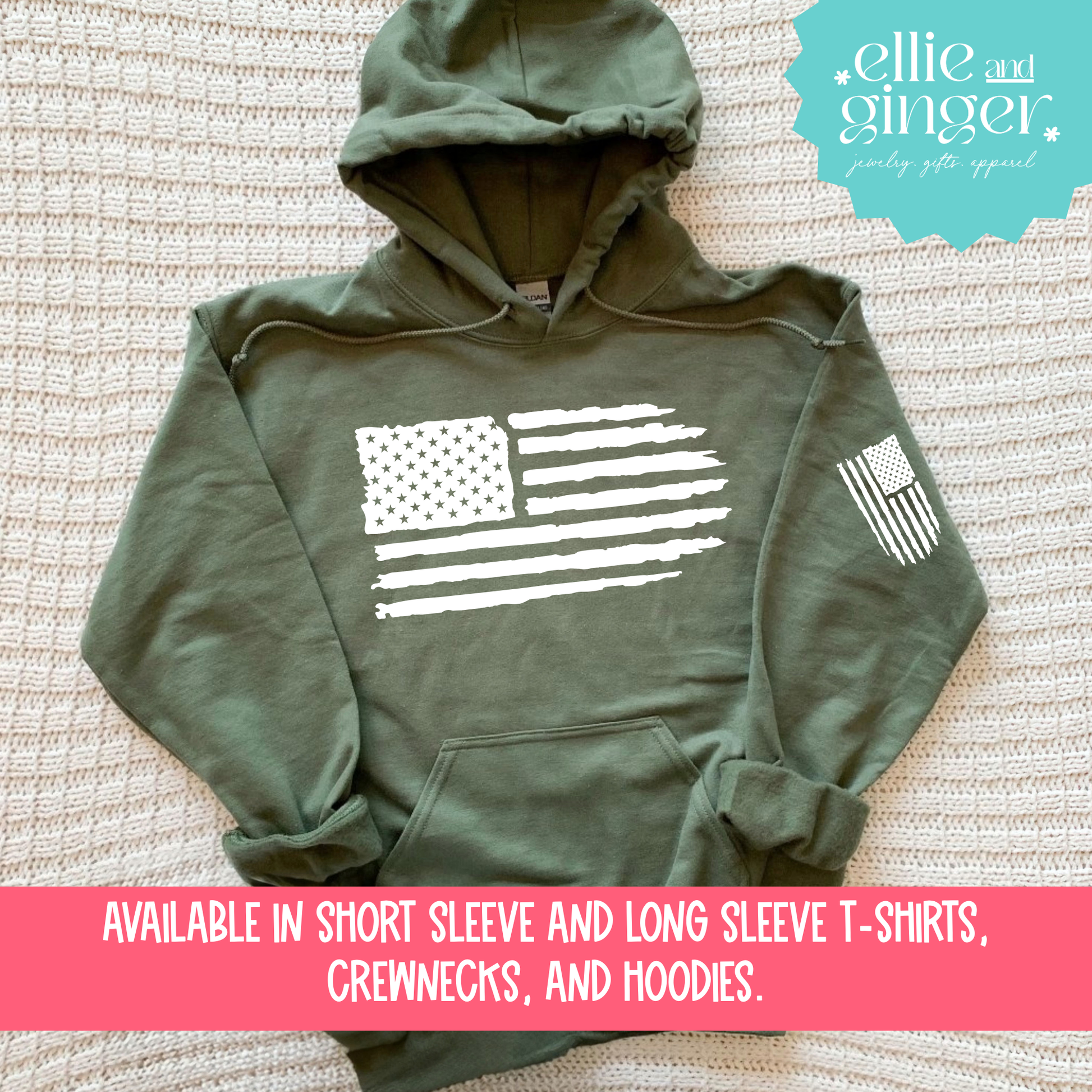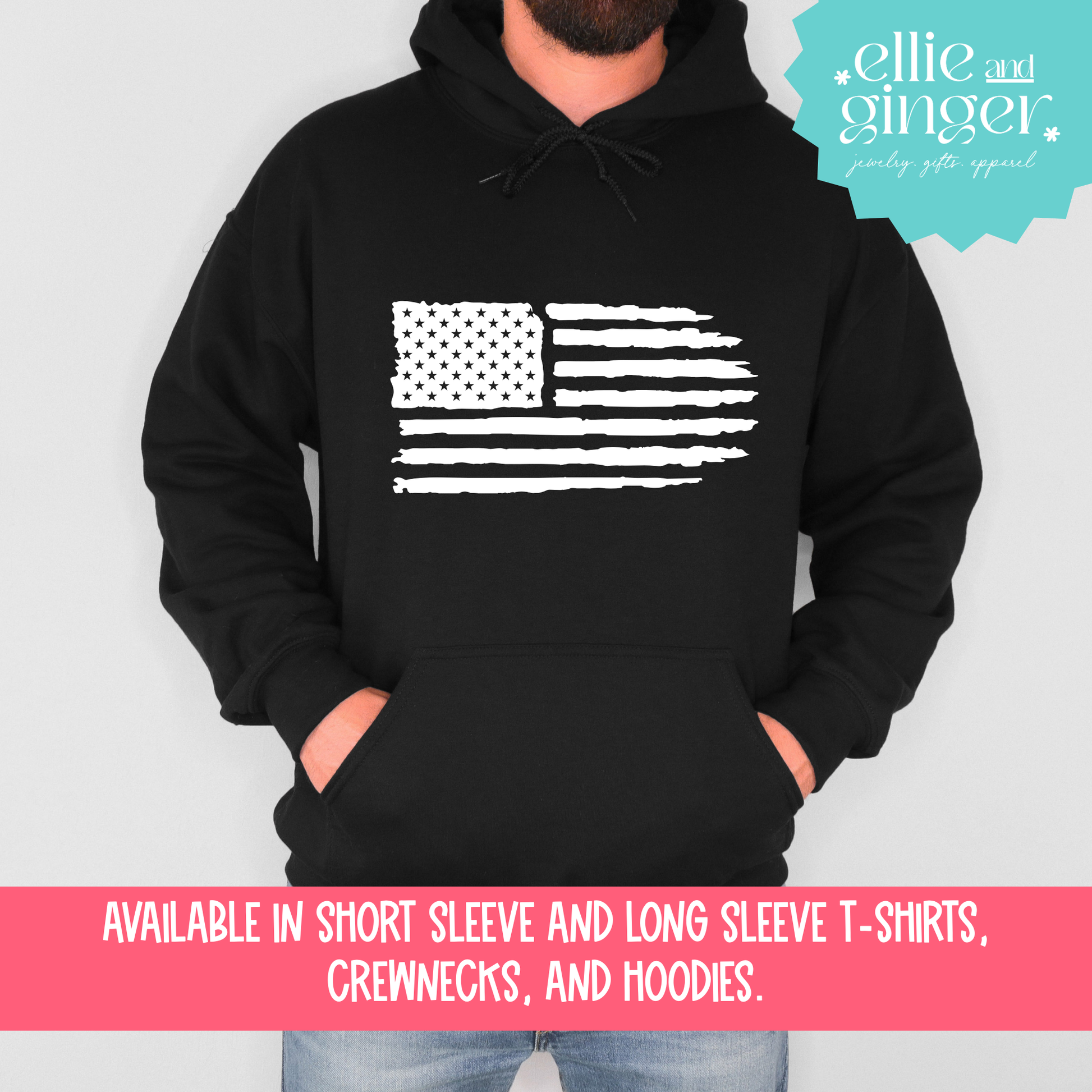 Distressed American Flag- Shirt, Crewneck or Hoodie