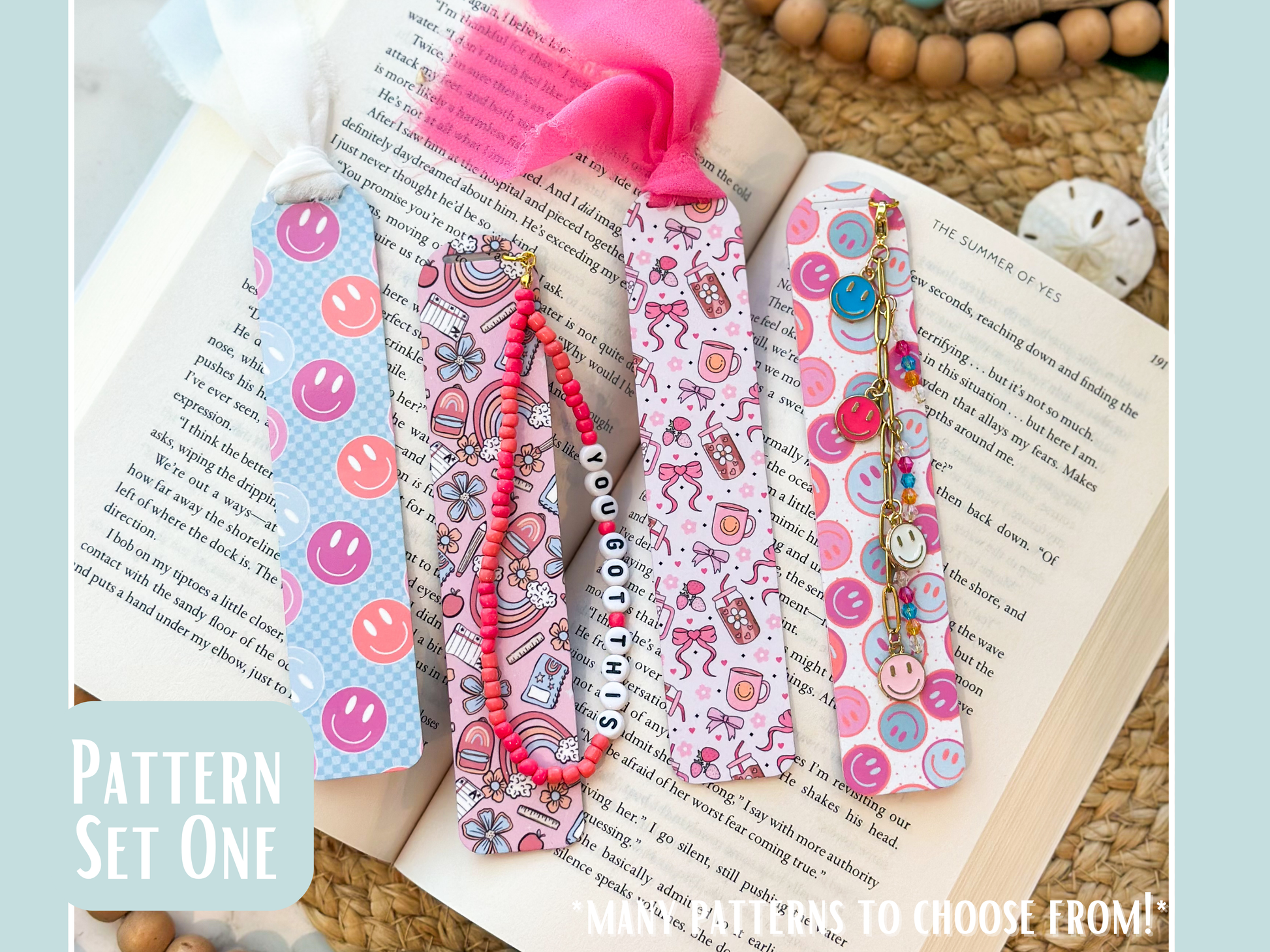 Super cute acrylic bookmark with pattern on both sides. Choose your pattern and then choose whether you'd like a chiffon ribbon OR a mystery charm tassel OR a mystery beaded tassel.