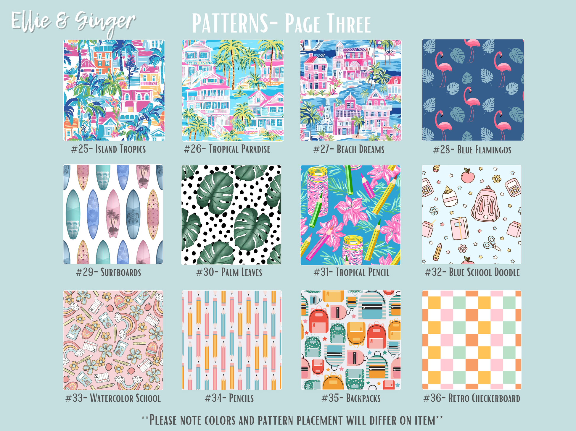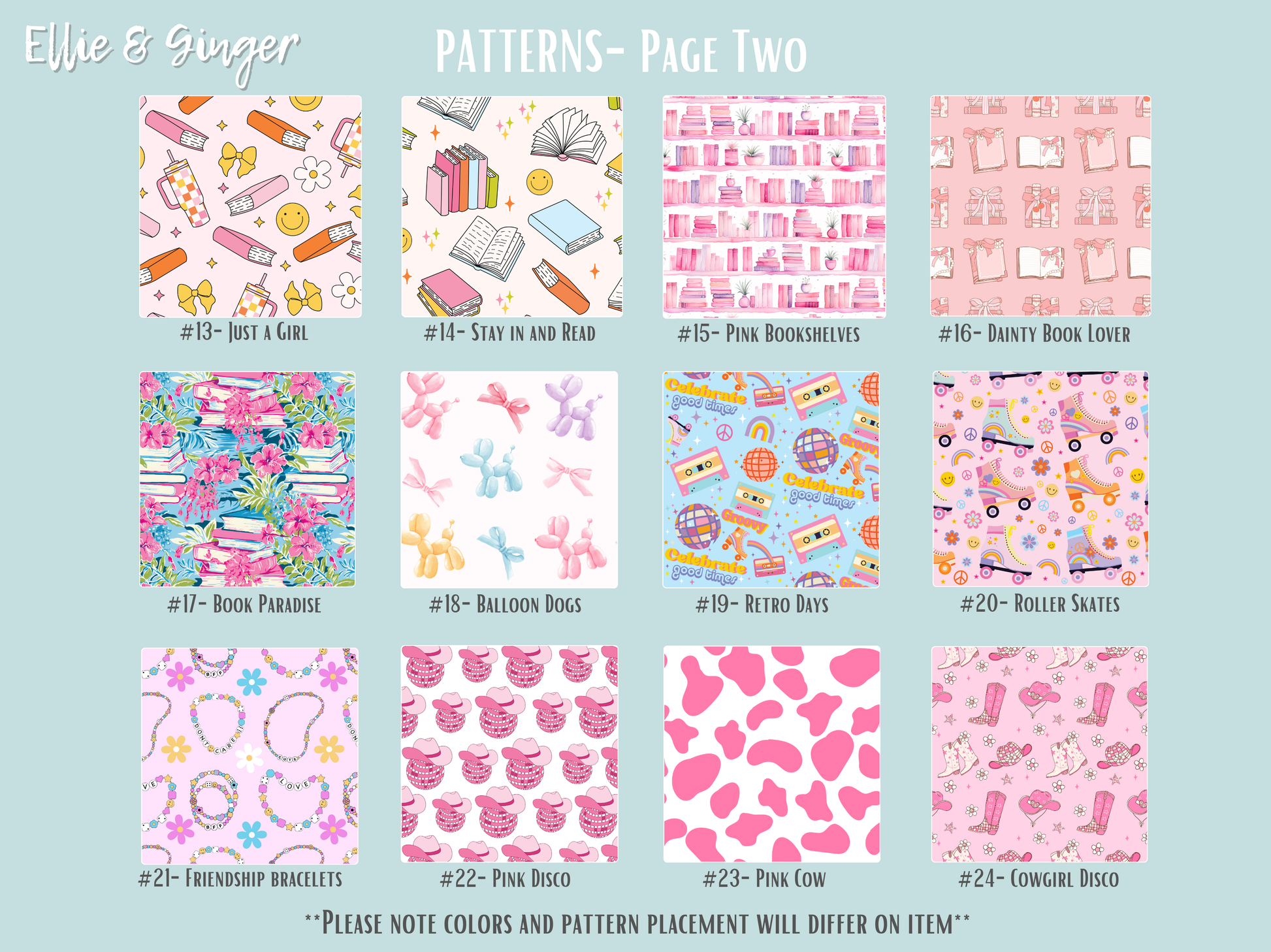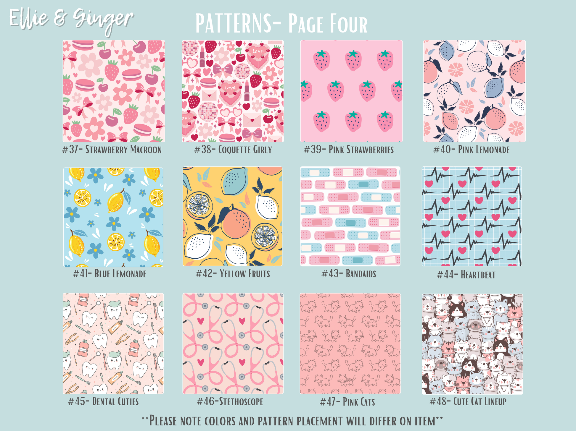 Choose from many different patterns. Even more patterns can be found in Pattern Set TWO in the cute accessories section. Mix and Match cute products with the same pattern or coordinating ones to create an adorable and customized gift.