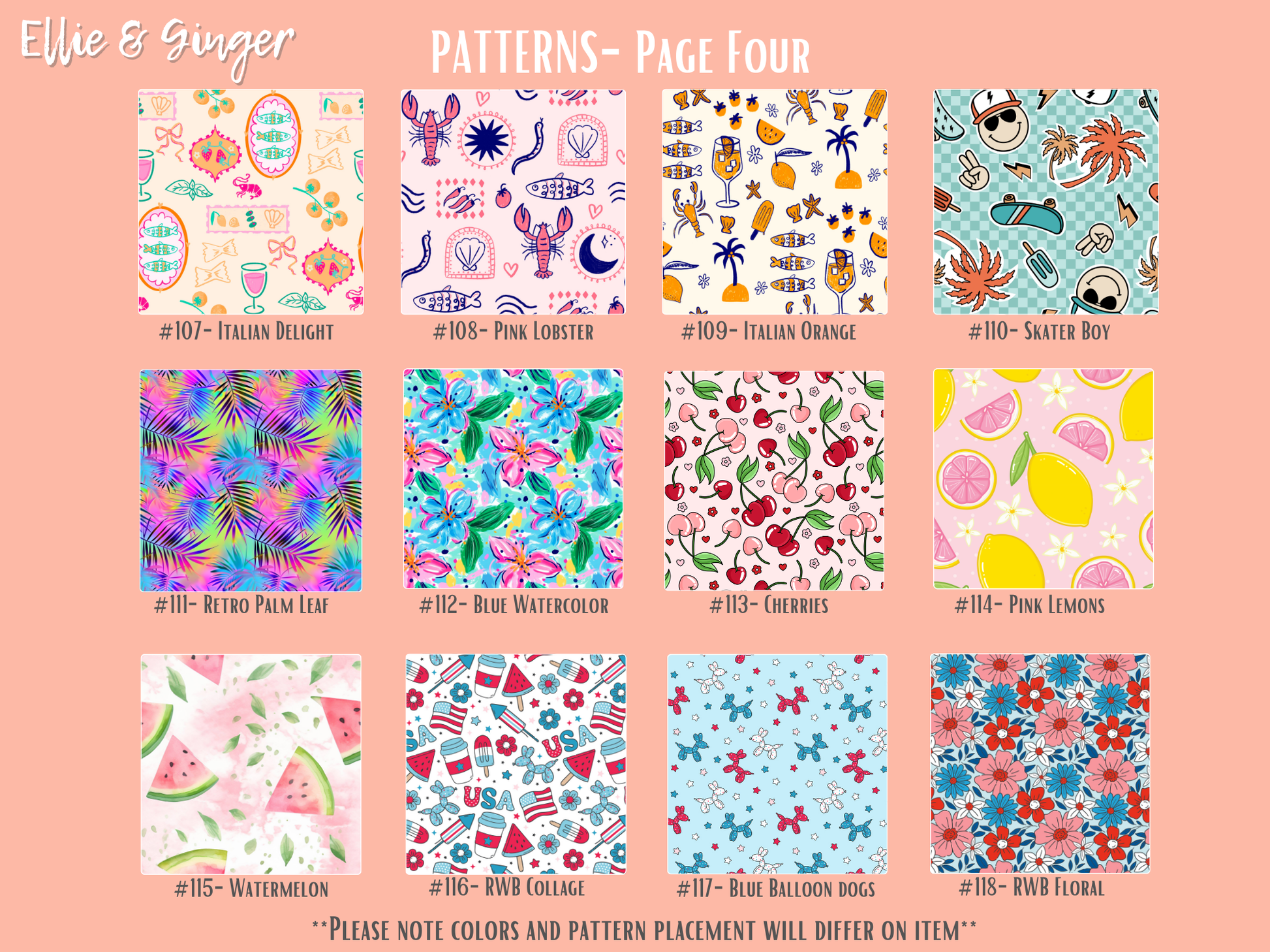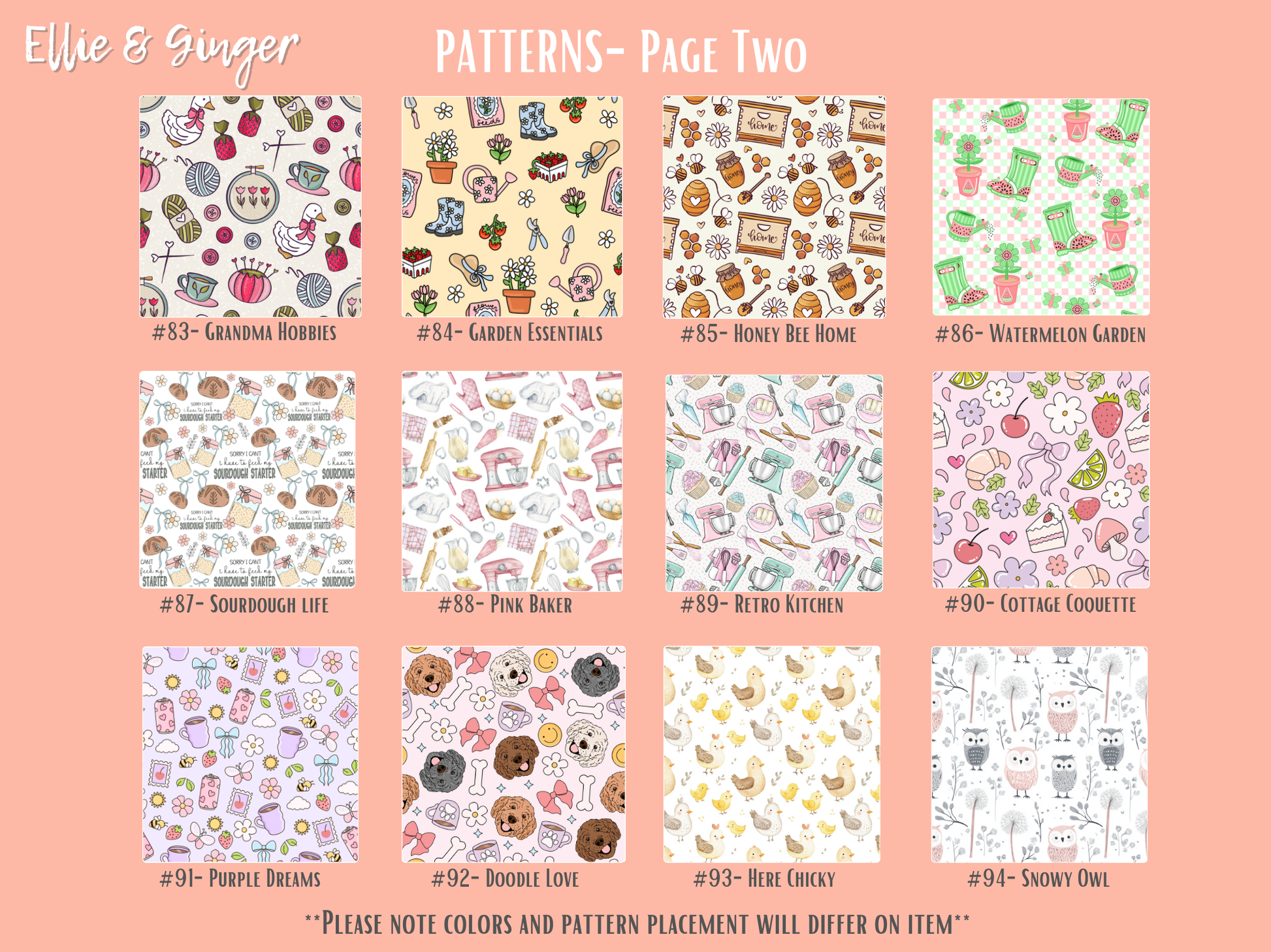 Please note... the coloring and placement of pattern will vary slightly and differ from your computer screen.