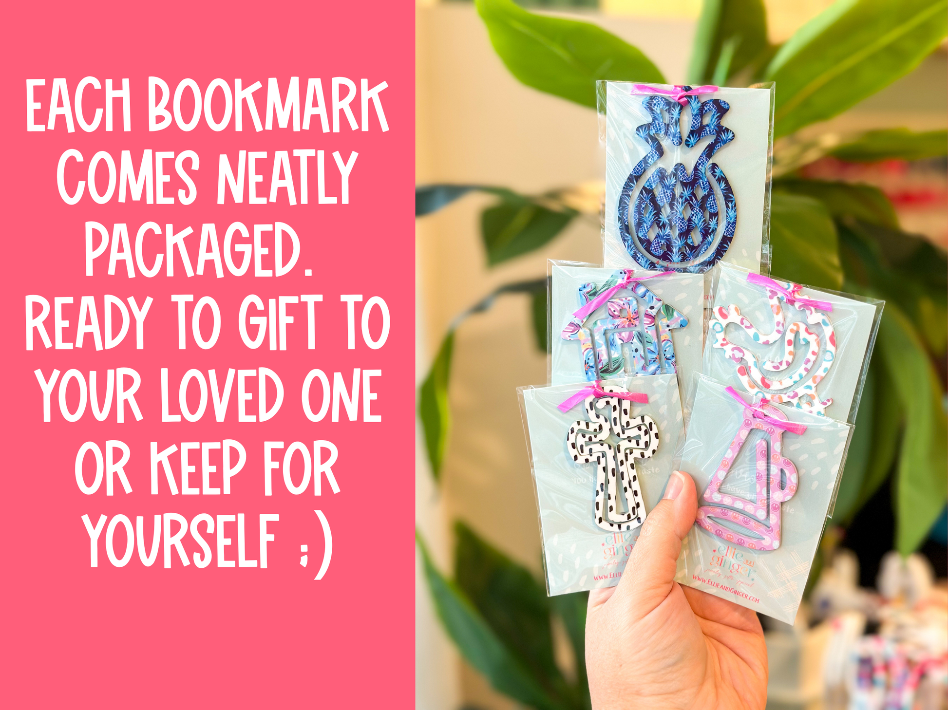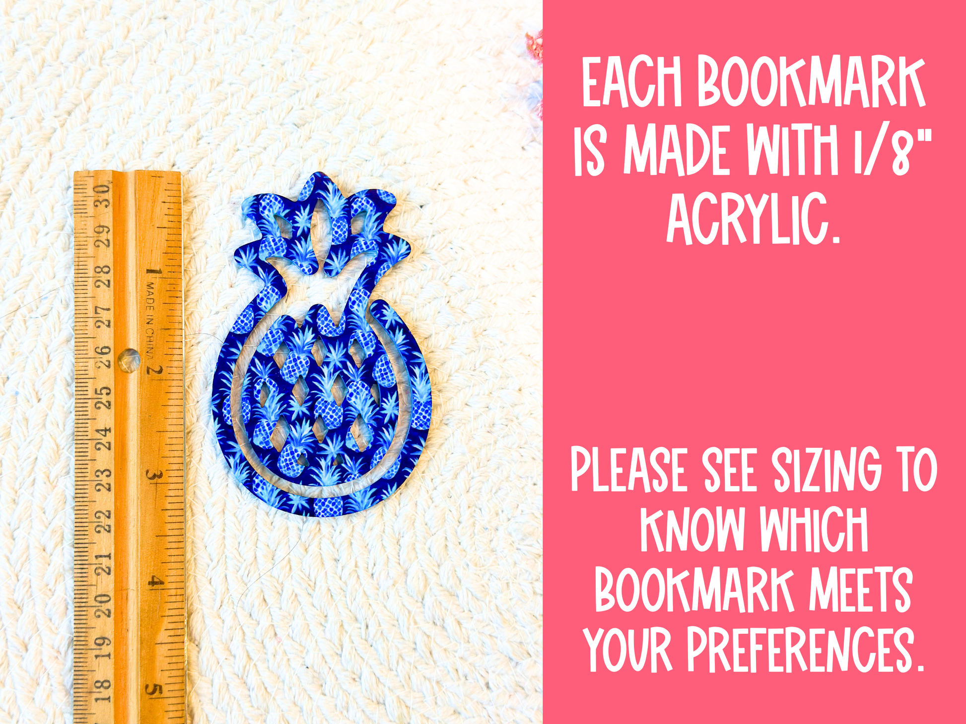 ~Bookmarks are 1/8" thick acrylic. While they are sturdy, they are certainly not indestructible.