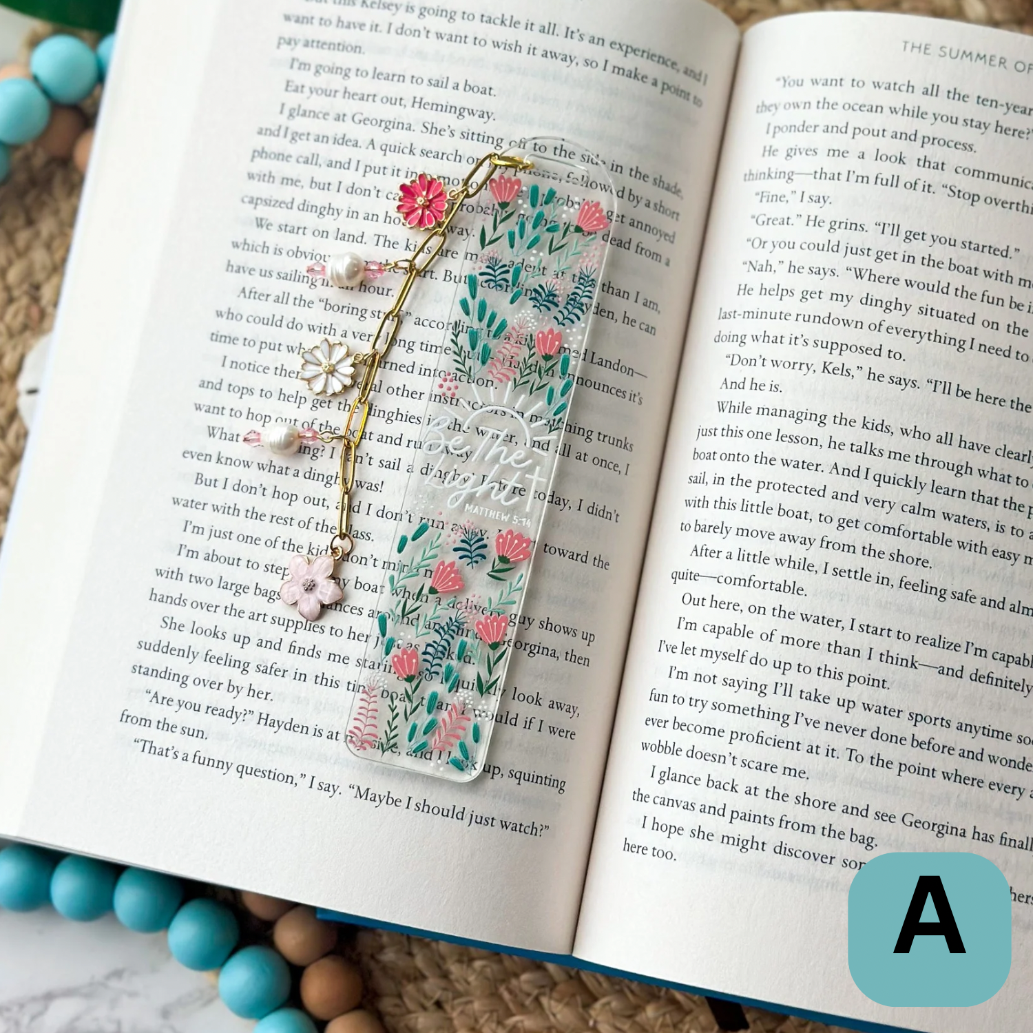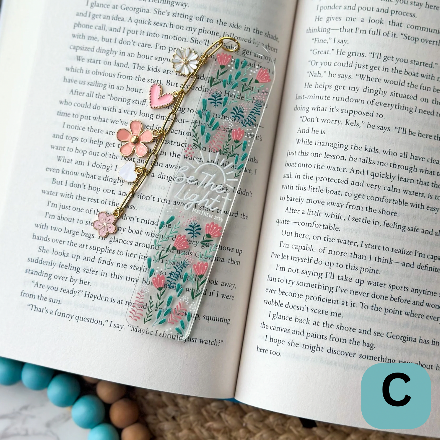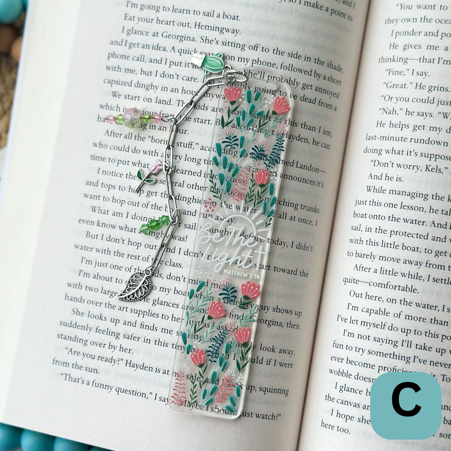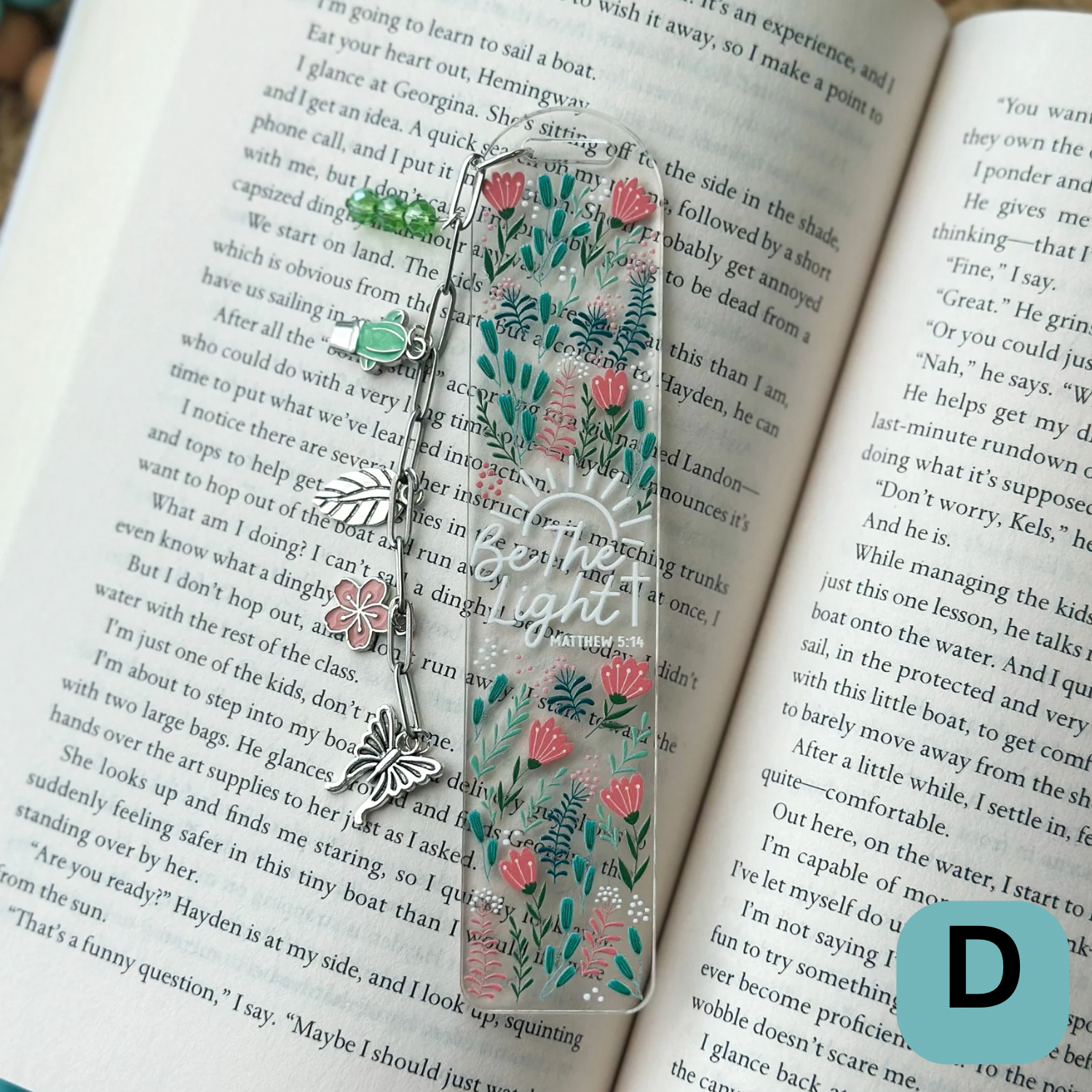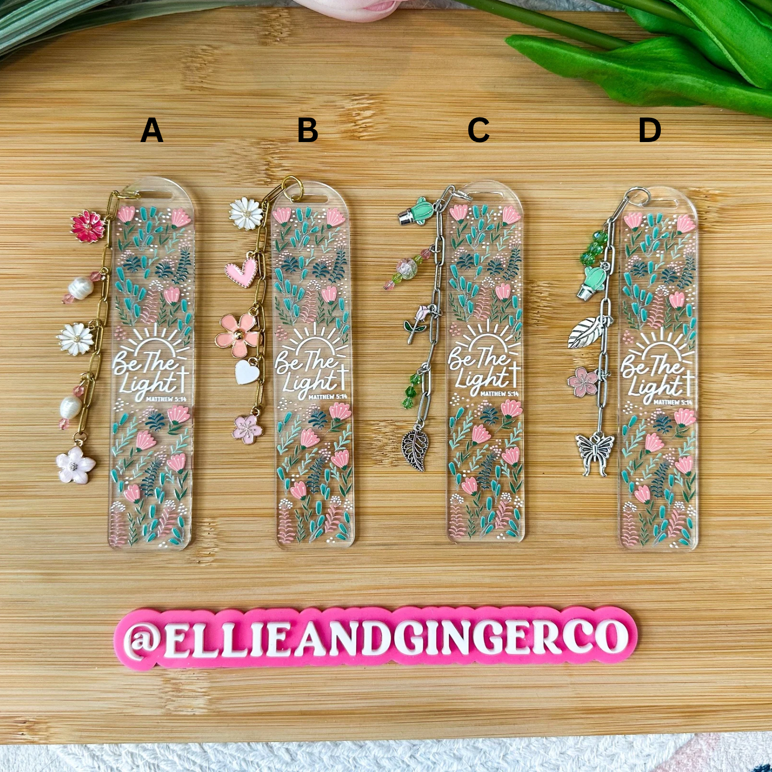 Clear Acrylic Bookmark- 1/8" thick. UV DTF decal bookmark. Be the Light design with green and pink florals