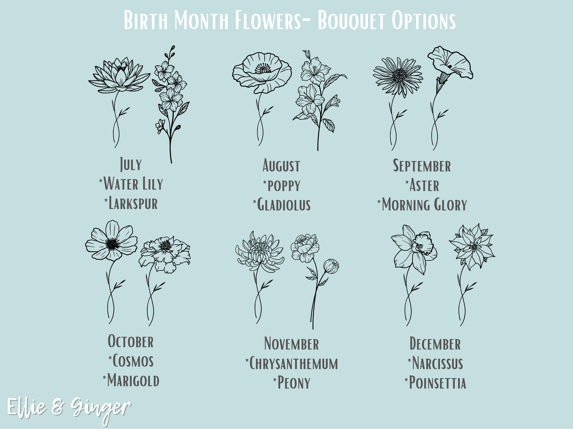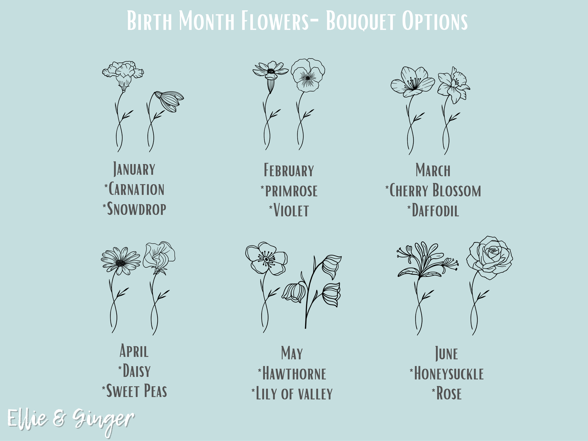 Several flowers can be chosen for one pendant and created into a "bouquet". If you need more than 4 flowers, choose the custom option. If you need help choosing flowers, please feel free to send me a message, I'm happy to help create a design for you.