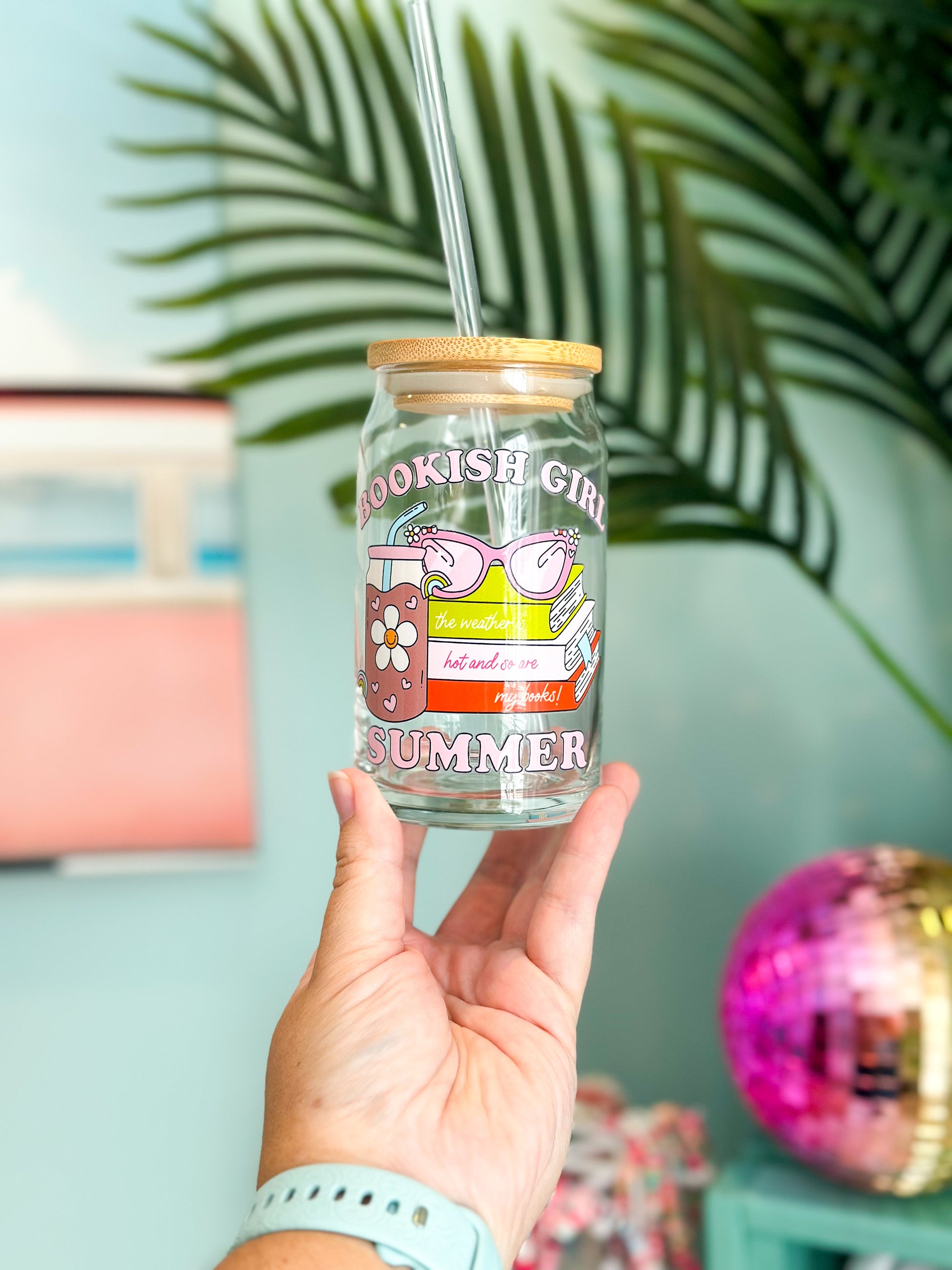 16oz Libbey Glass Cup with UV DTF transfer... Bookish Girl Summer
