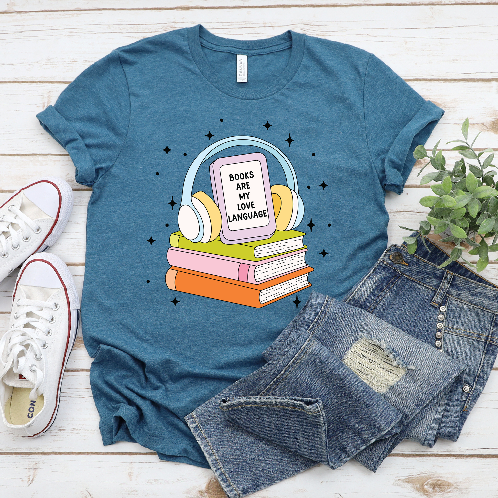 Are you in your book lover era? Why not match a cute shirt to that with this cute "Books are my love language" shirt.
