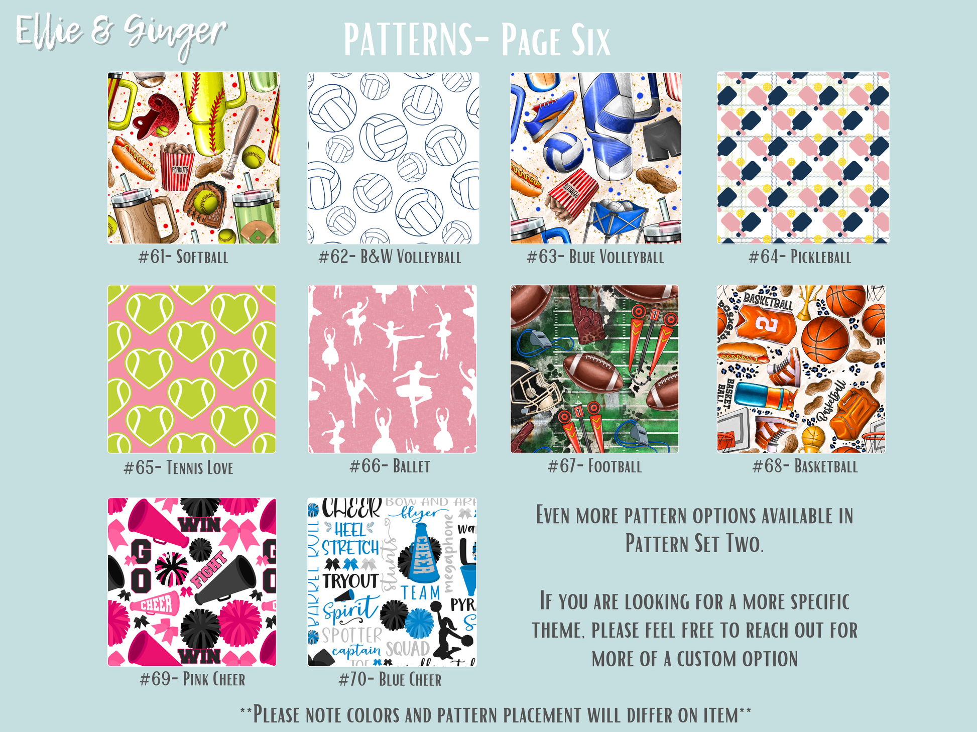 Choose from many different patterns. Even more patterns found in Pattern Set TWO within the cute accessories section. Please note... the coloring and placement of pattern will vary slightly and differ from your computer screen.