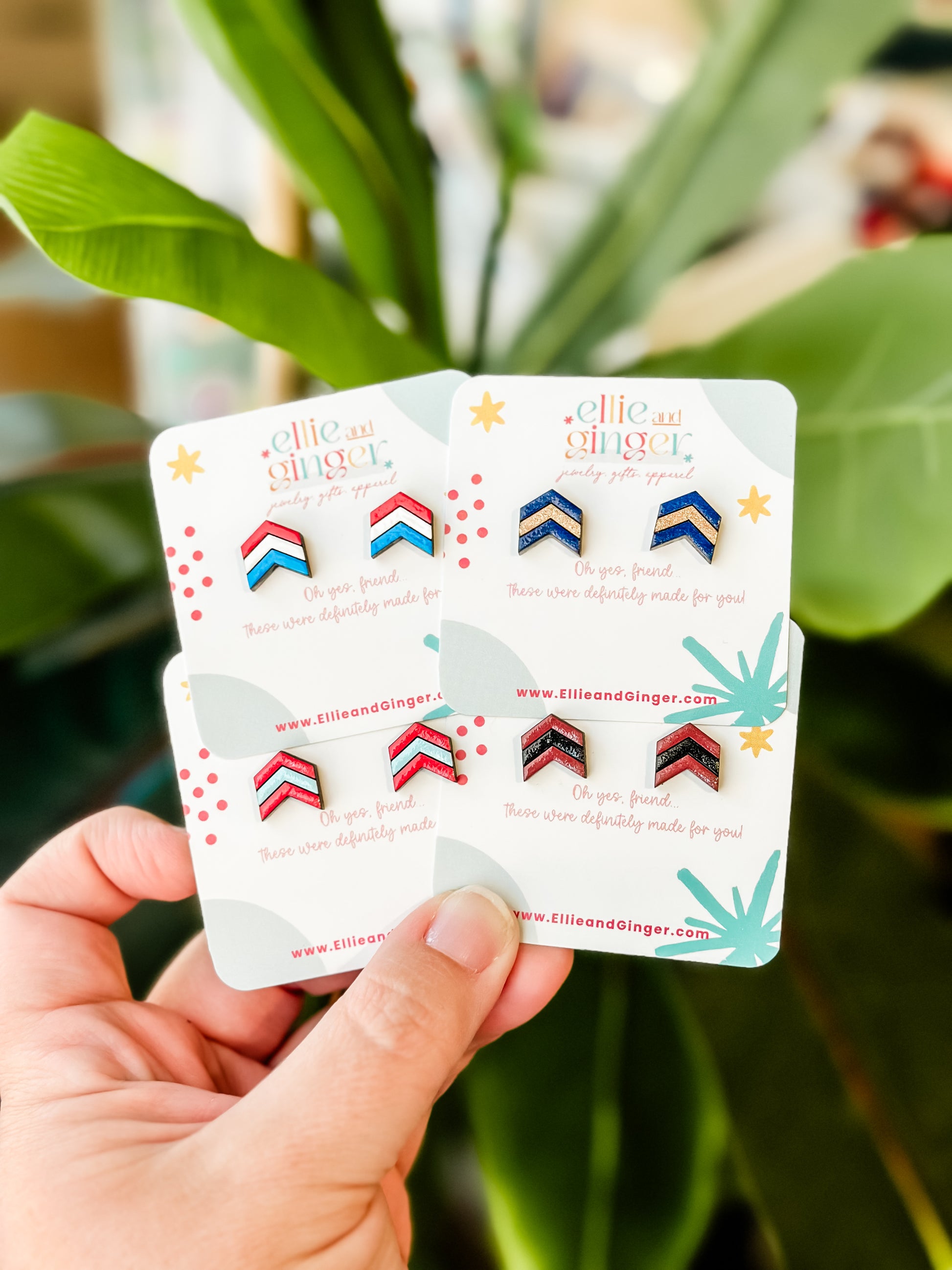 Custom Color Chevron Arrows- Hand Painted Wood Stud Earrings