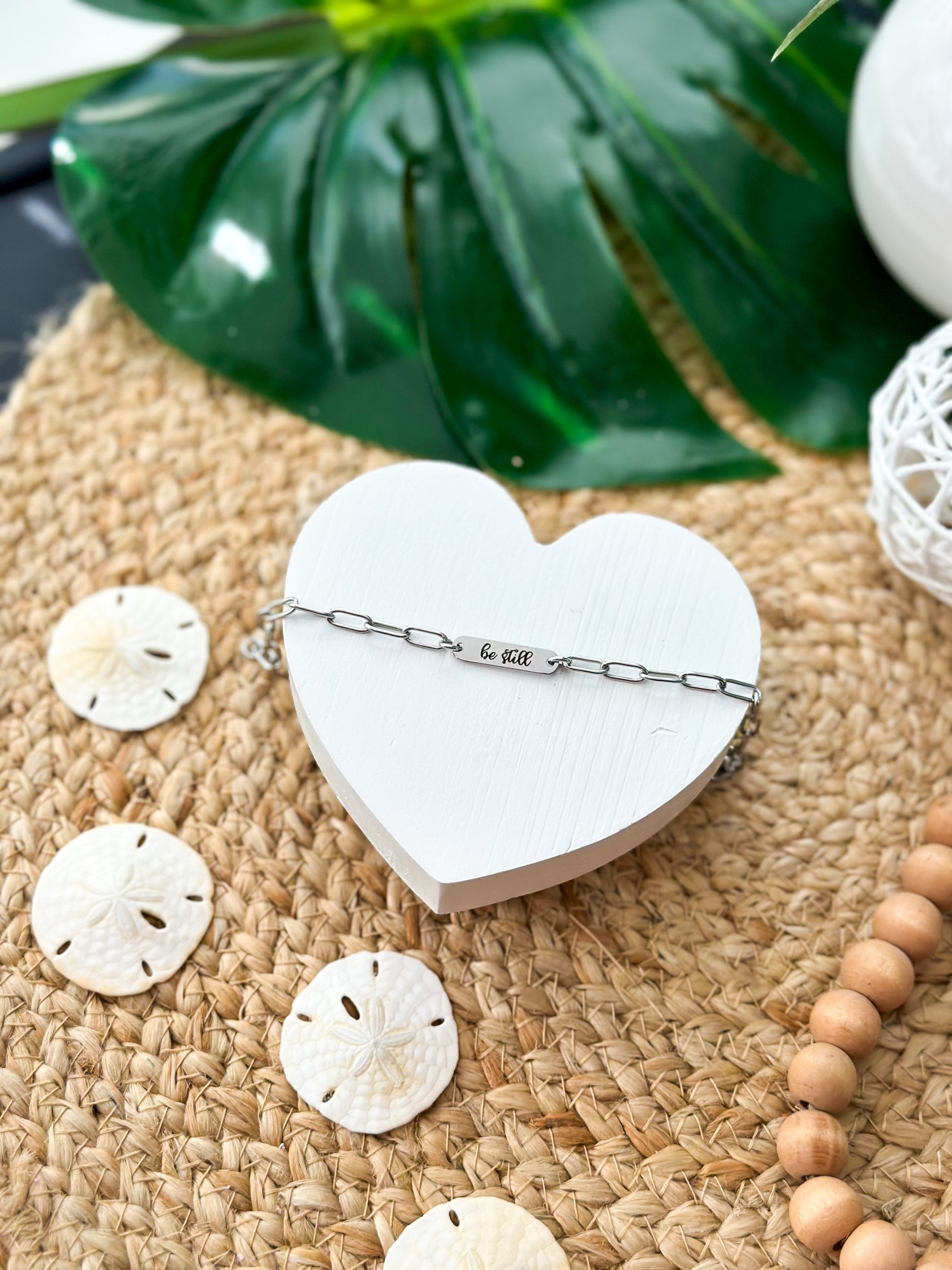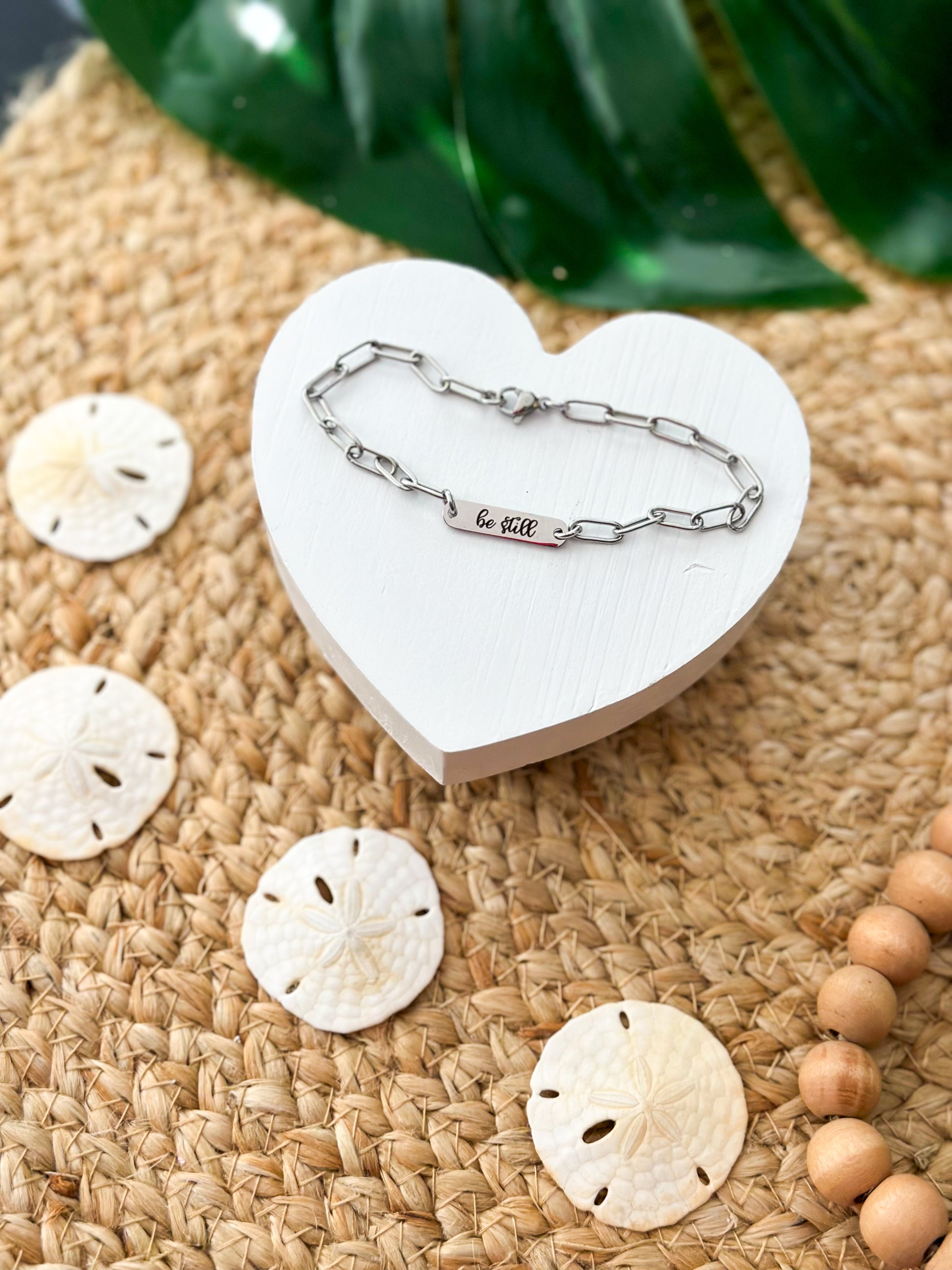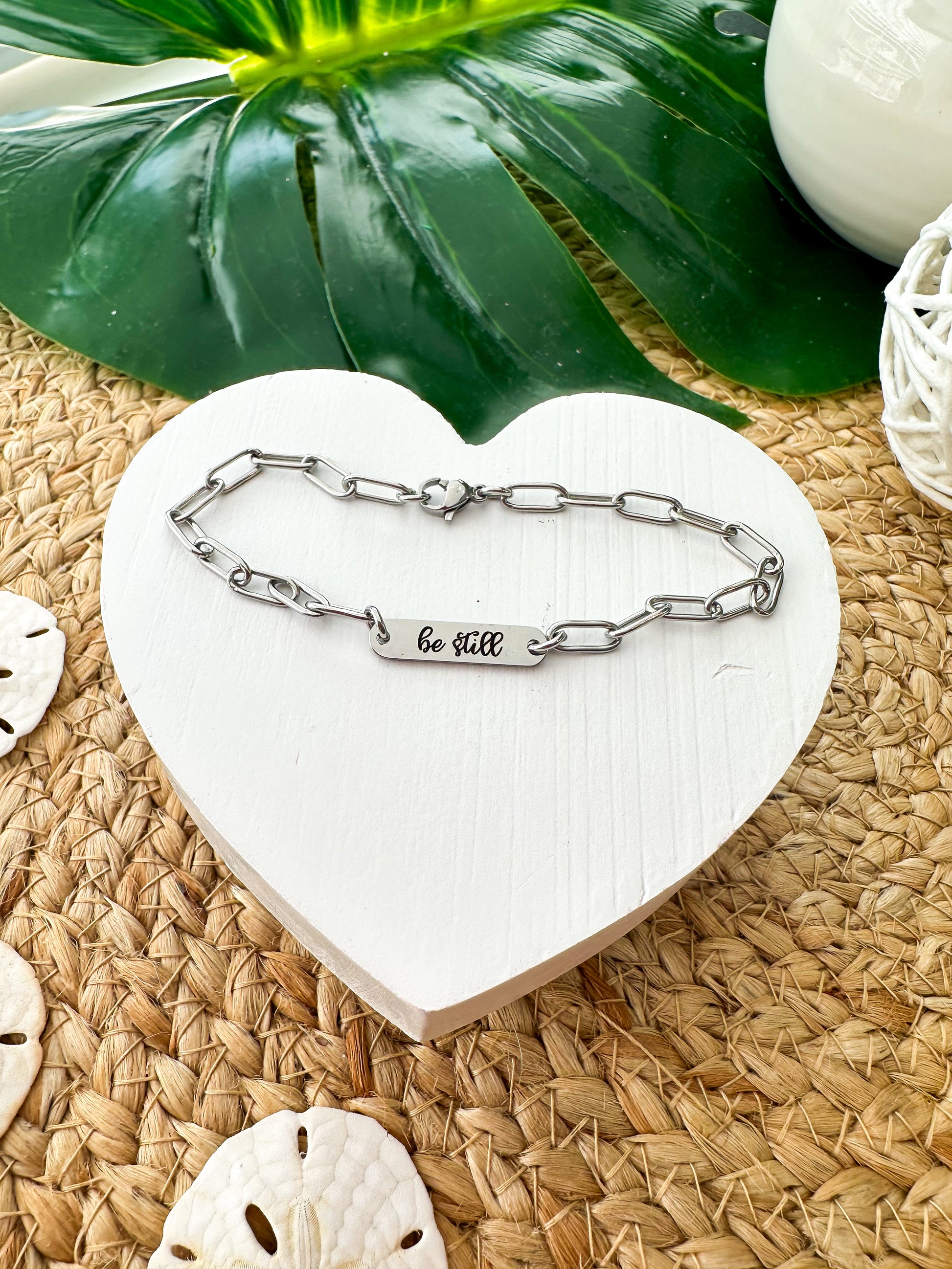 Laser engraved "Be Still" paperclip bracelet made from stainless steel. Lightweight, comfortable fit for everyday wear. Whether layered or worn solo, it’s a subtle statement of individuality and trendy style.