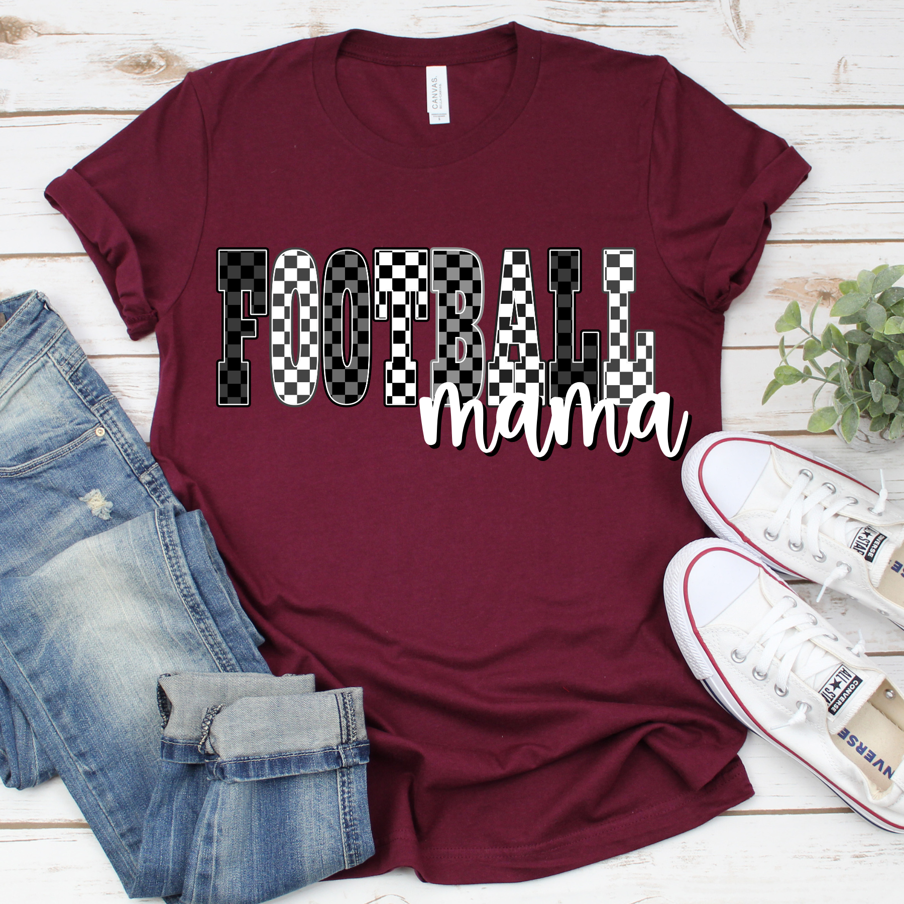 Football Mama Black and White Check- Shirt, Crewneck or Hoodie