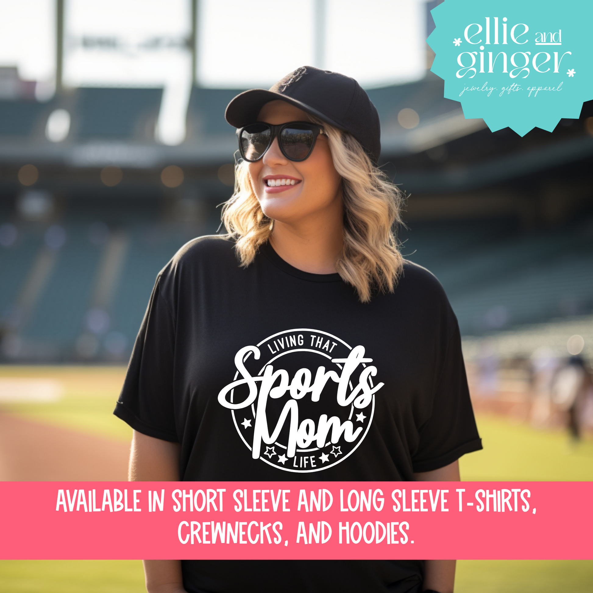 Living That Sports Mom Life- Shirt, Crewneck or Hoodie