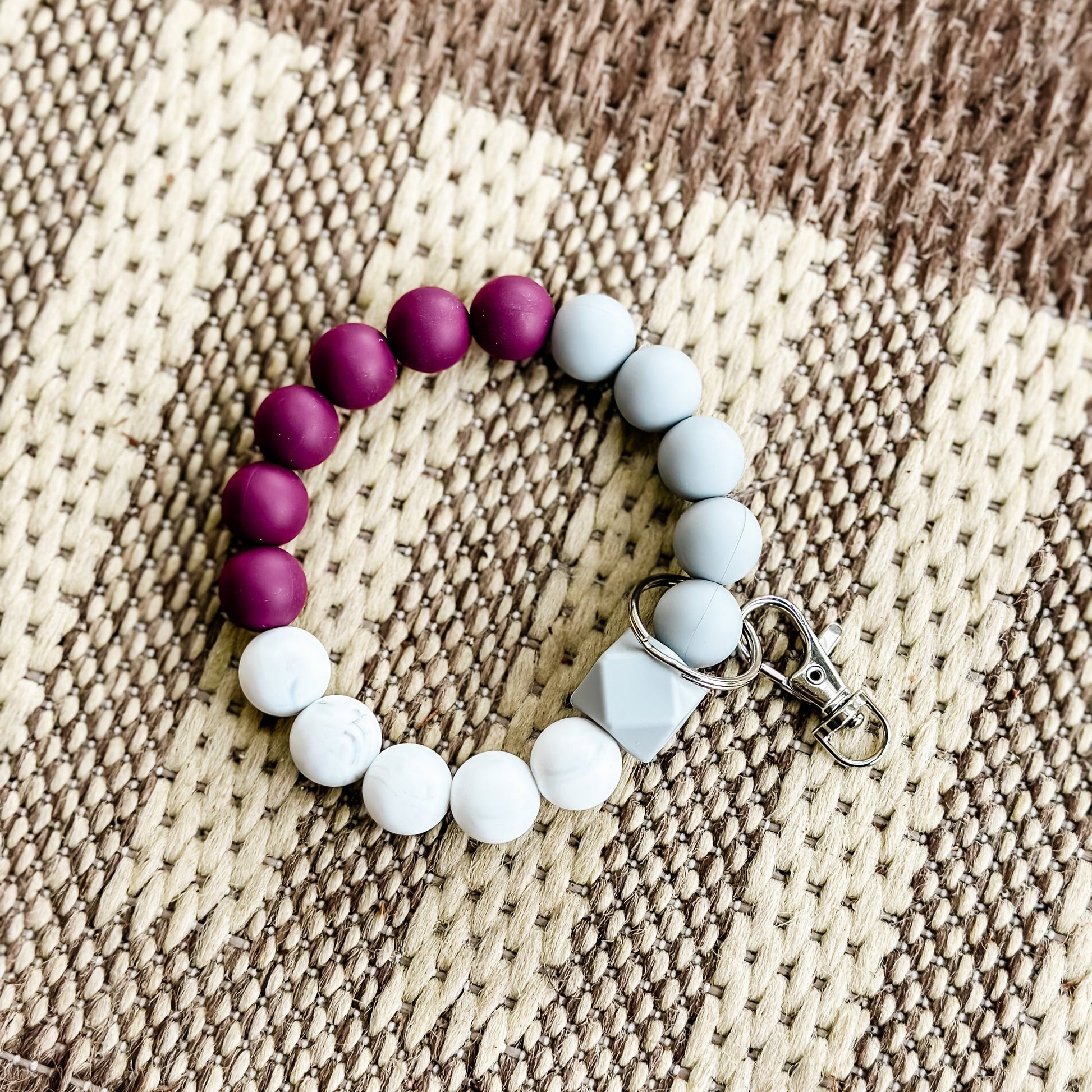 Silicone Wristlet Keychain- Maroon, Gray & White