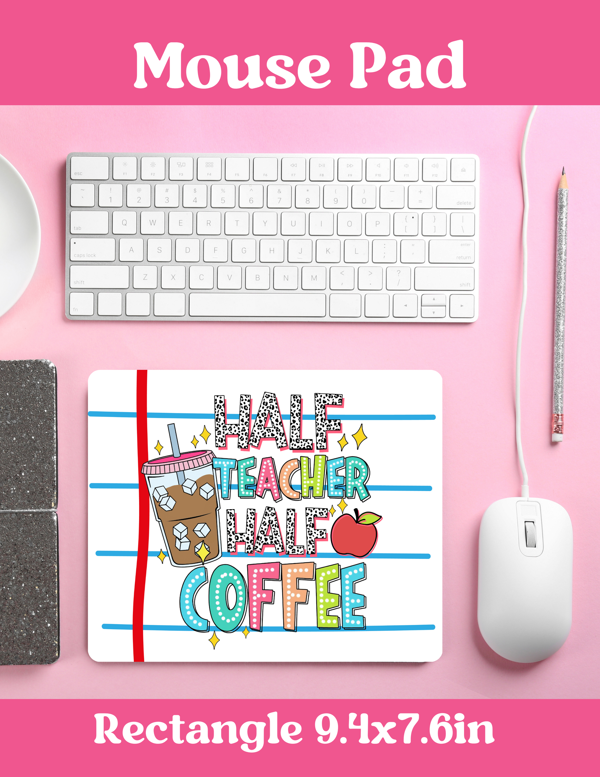Rectangle Mousepad with cute and colorful "Half Teacher Half Coffee" graphic