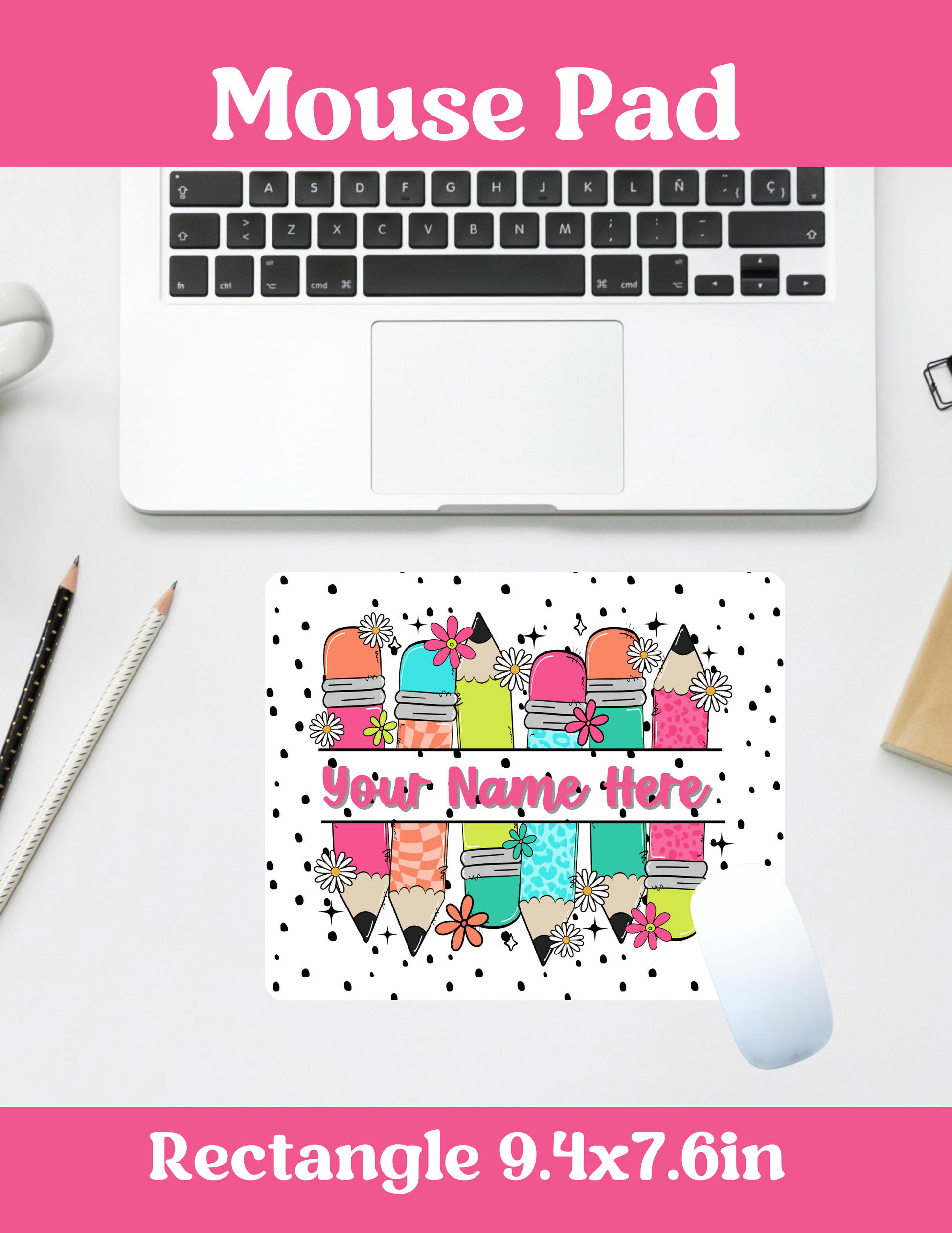 Rectangle Mousepad with neon pencils. Add a name by leaving a note at checkout.