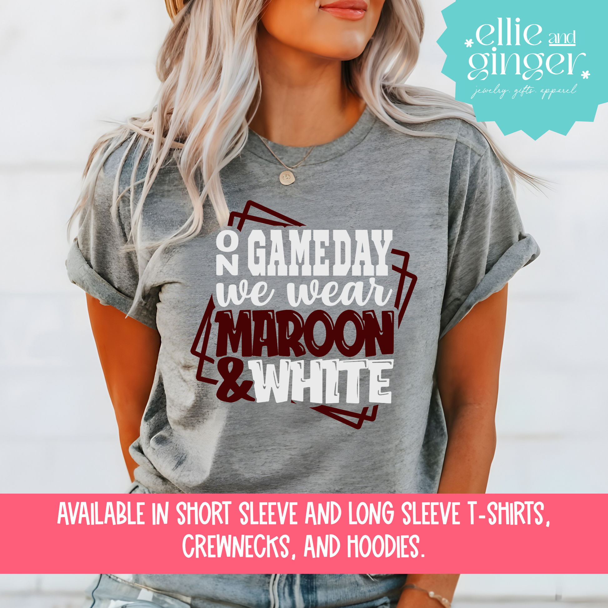 On Gameday We Wear Maroon and White- Shirt, Crewneck or Hoodie