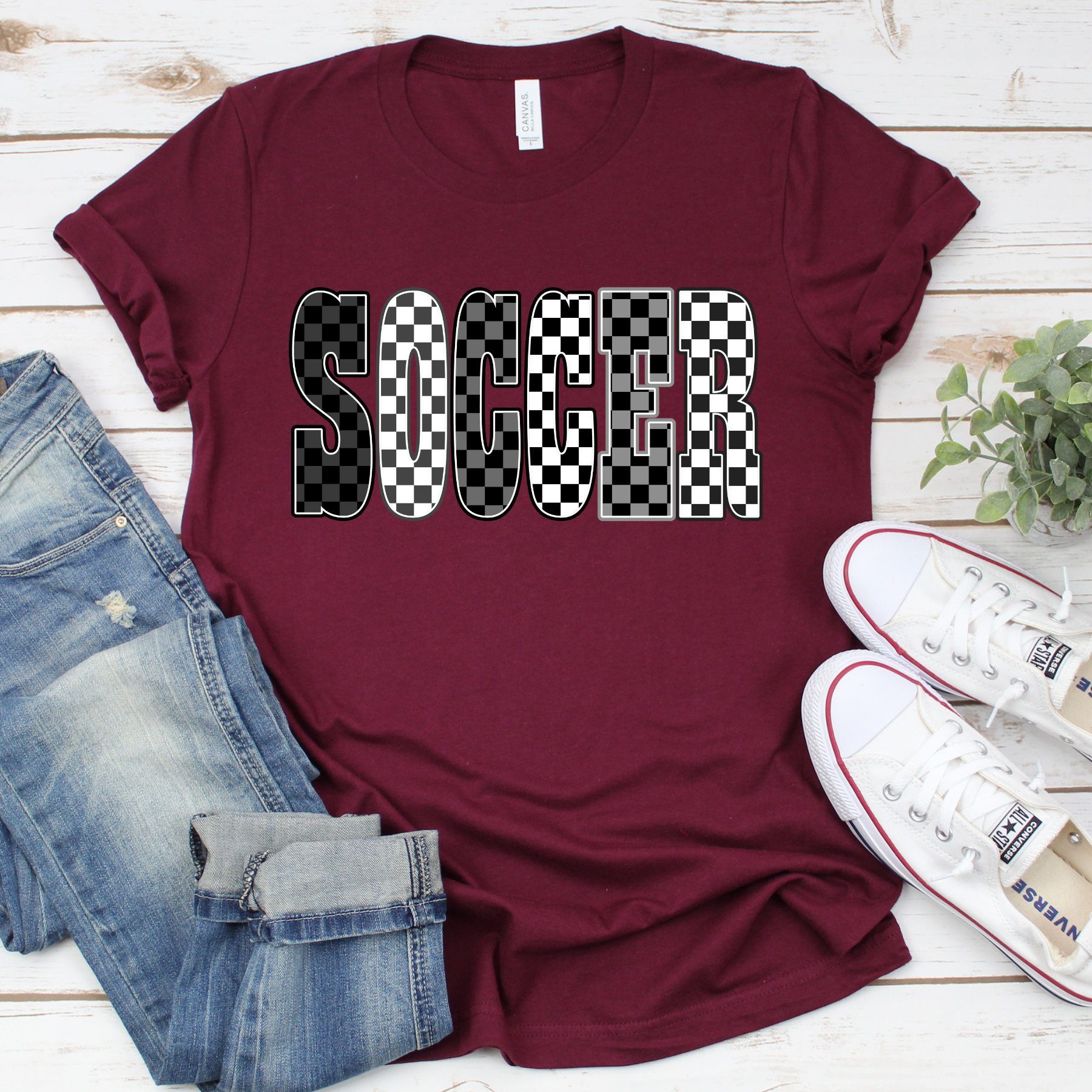 Soccer Black and White Check- Shirt, Crewneck or Hoodie