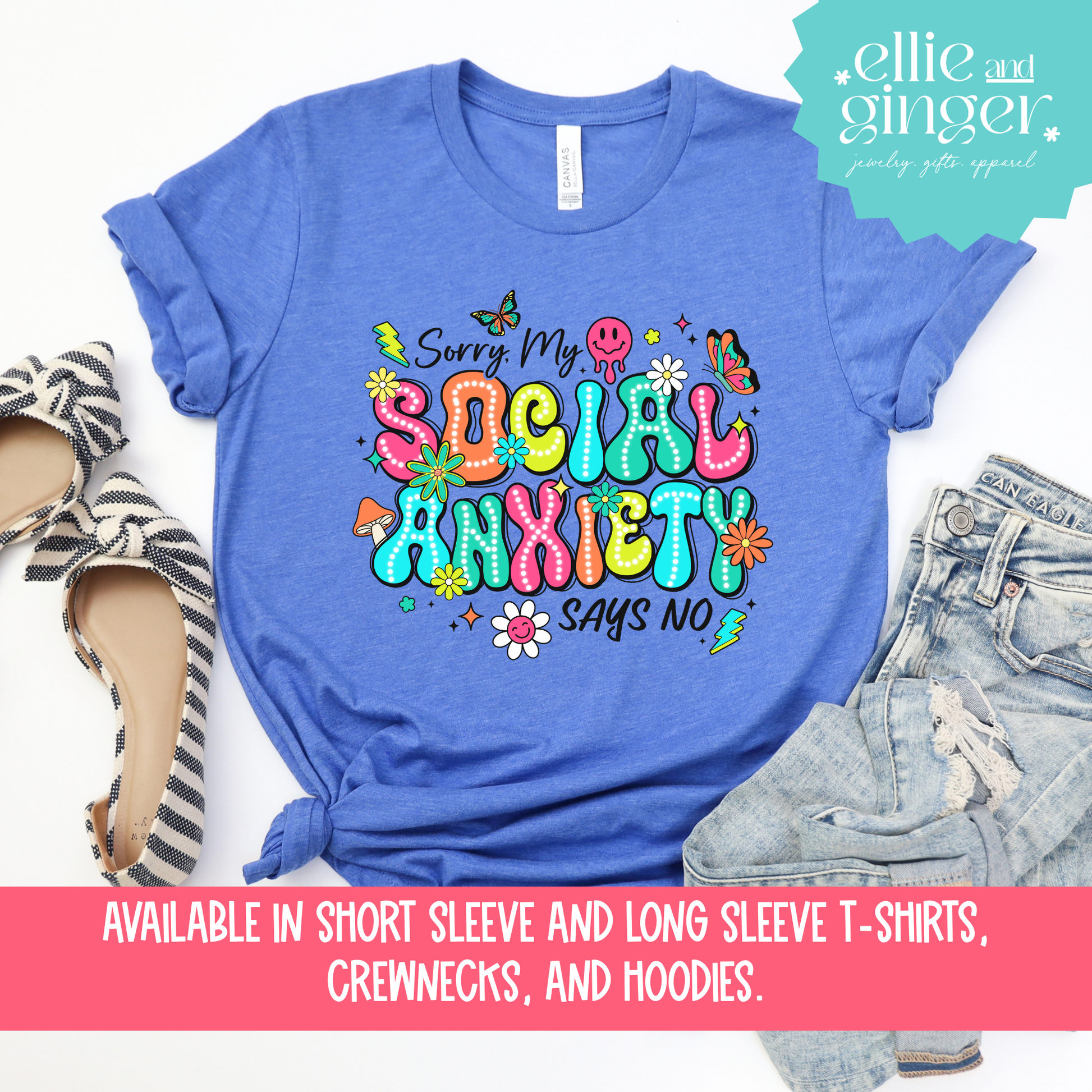 Sorry, My Social Anxiety Says No- Shirt, Crewneck, or Hoodie