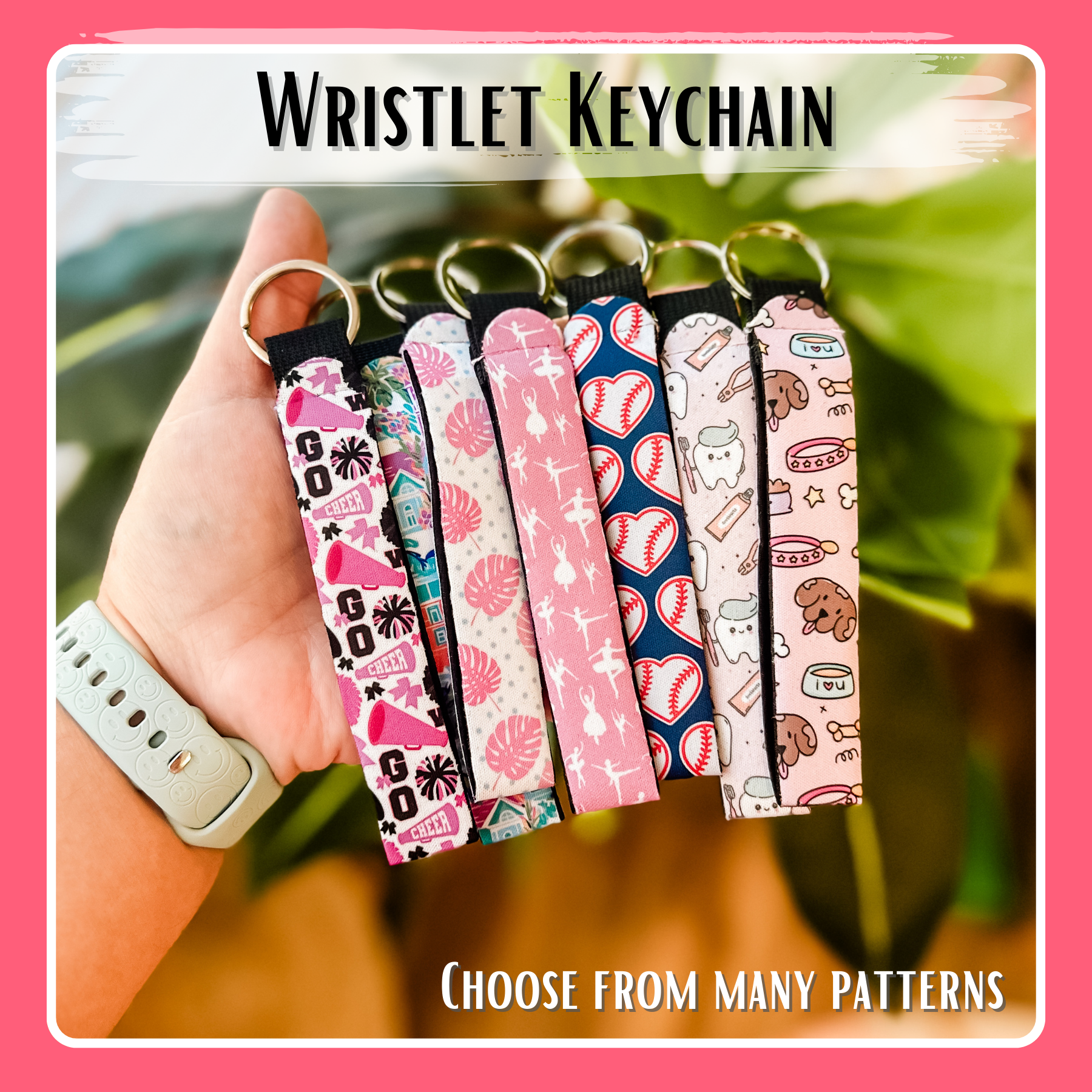 Lightweight Wristlet Keychain. 1 sublimated neoprene wristlet keychain. Comes packaged to stay nice and clean until you are ready to use it or gift it to a friend. Mix and Match with a chapstick holder keychain for extra cute accessories